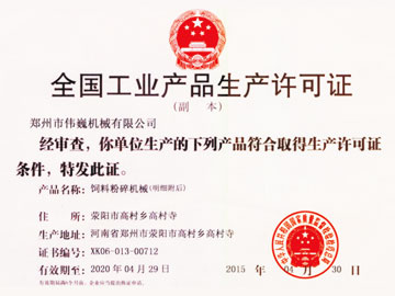 鄭州市偉巍機械有限公司獲得河南省農(nóng)機推廣許可證和質(zhì)量監(jiān)督檢驗合格證。