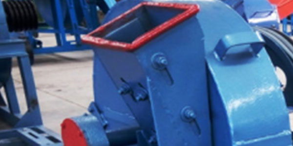 原料由進料口進入后,先經(jīng)刀片,切削進入粉碎室,再由內置風葉產生的風力將刨花送至出料口。刨花大小由調整刀片進行調整,以適應各種不同需要。