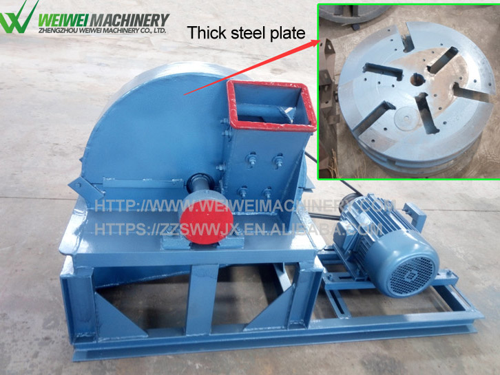 刀盤是由加厚鋼板而成改變了原來易碎的特點,增長了機器的使用壽命,風葉設計即提高了木材在機器中的運行速度,又便于木材從機器中加速篩出,整個刀盤運作平穩(wěn),起到二次粉碎的作用。